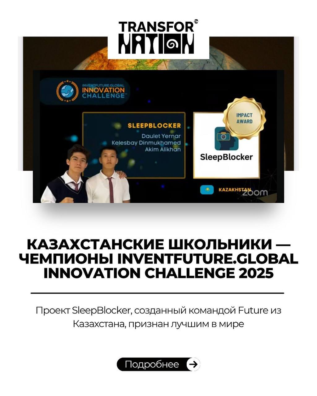 Наши юные инноваторы завоевали сразу ДВЕ главные награды за свой проект SleepBlocker: